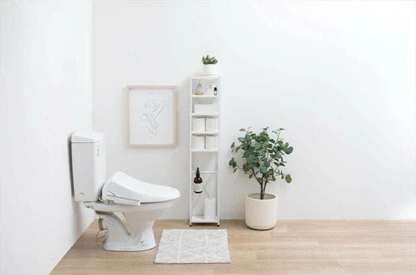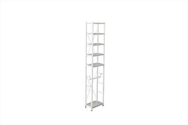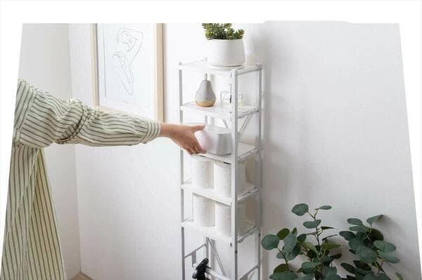 トイレ用品がひとつにまとまるスリムトイレラック。ハイタイプ&可動棚4段と吊り下げポールで、かさばるアイテムもまとめて収納。オープンタイプで圧迫感も少なく、収納物の出し入れも楽々。デッドスペースを有効活用しながら、スッキリ快適な空間を叶えます。