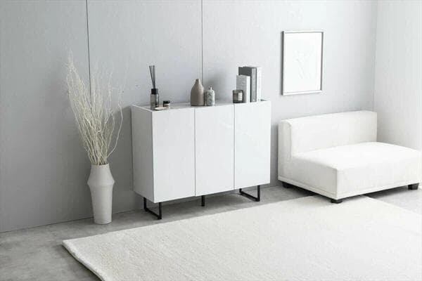 石目柄と鏡面の組み合わせが美しい『Anq(アンク)』シリーズのキャビネット。直線的なフラットデザインで、置くだけで落ち着いた大人な空間を演出します。また脚部は取り外しができ、脚あり・脚なしの2WAYで使用することが可能。さらにスリムなのに大容量収納もでき、使い勝手も抜群です。