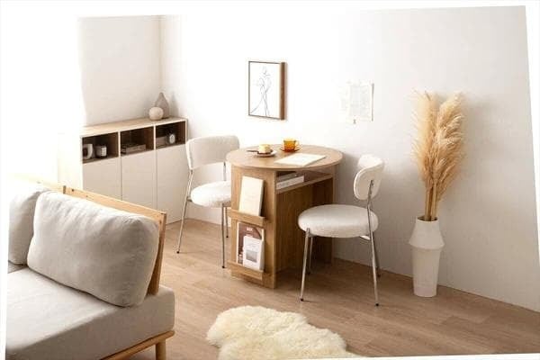 丸い天板と個性的な脚部がこなれた空間を演出する『Luna(ルナ)』ブックラック付き丸型ダイニングテーブル。シンプルな1トーンデザインは上品な佇まいで、韓国風インテリアはもちろん様々なテイストのお部屋に馴染みます。コンパクトながらも天板下の収納スペースや、サイドのディスプレイラックにより実用性も兼ね備え。デザインと使いやすさにこだわった、上質な空間を演出するテーブルです。
