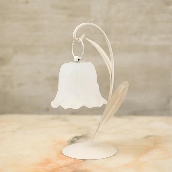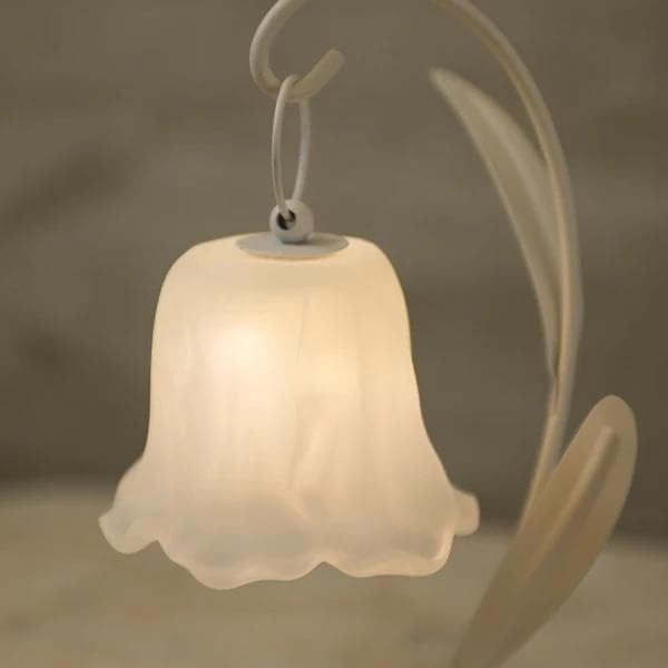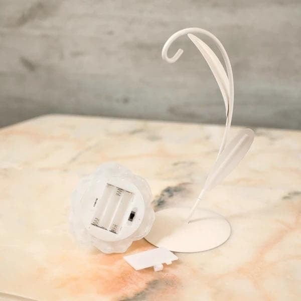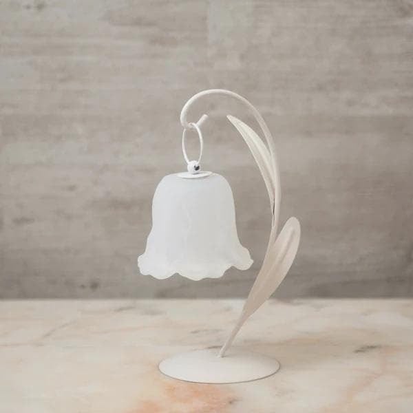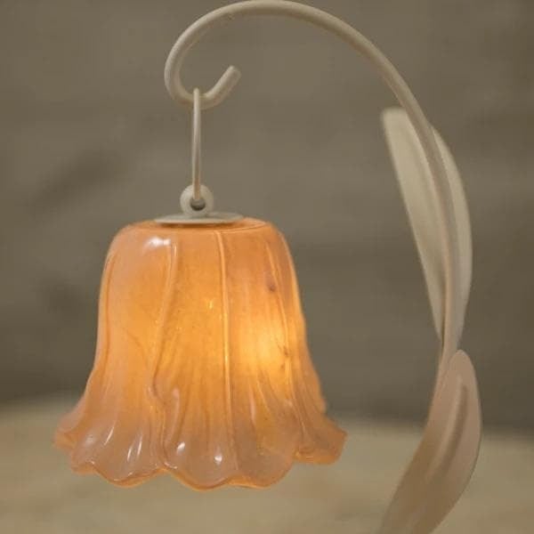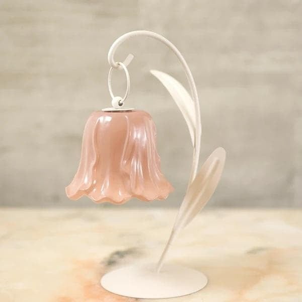 葉っぱ型の本体から、ガラスのお花がちょこんとぶら下がるフラワーランプ。