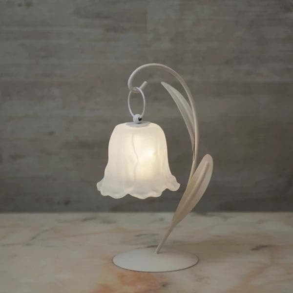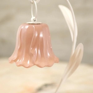 灯りをともすと、ガラスの花びらがふんわり透けて、お部屋にやさしい光を届けてくれます。