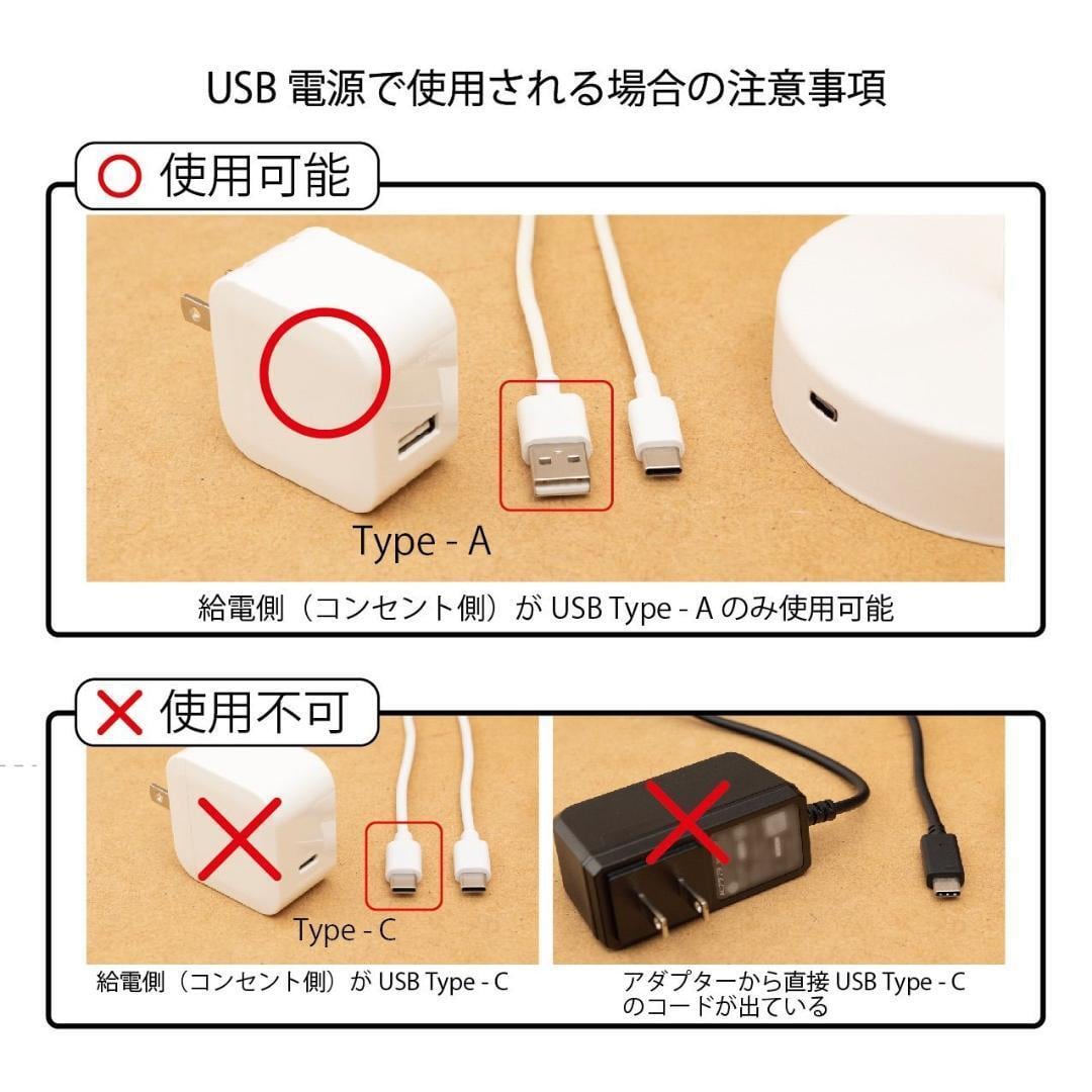 USB-Cで使用される場合は給電側(コンセント側)がUSB-TypeAのみ使用可能です。