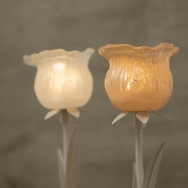 テーブルにちょこんと咲く、チューリップ型のフラワーランプ。