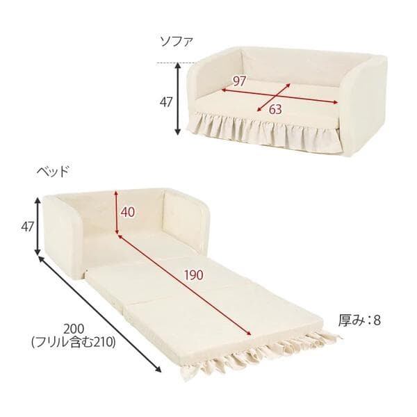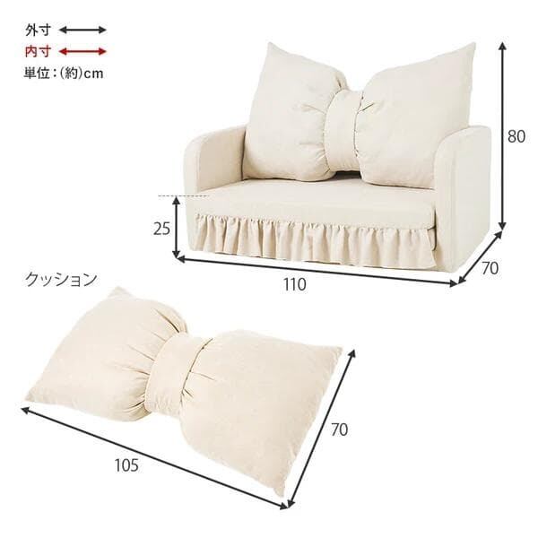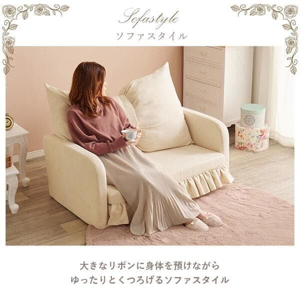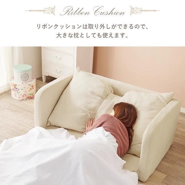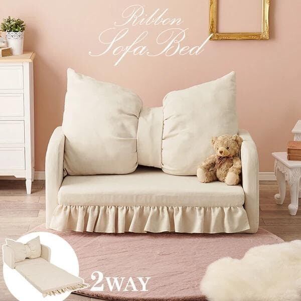 大きなリボンクッションとフリルが華やかな、可愛い2WAYソファベッド