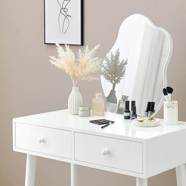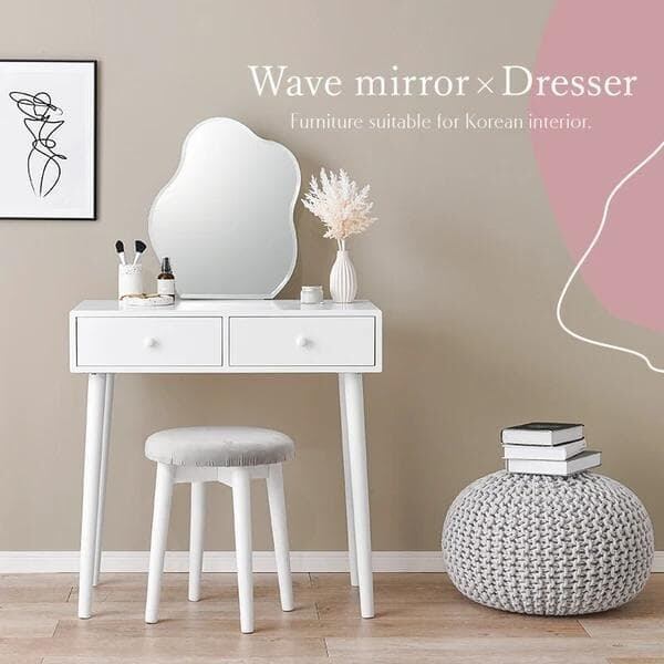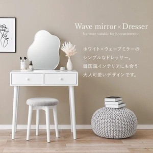【2点セット】ウェーブミラー スツール付き ドレッサー 韓国風インテリア