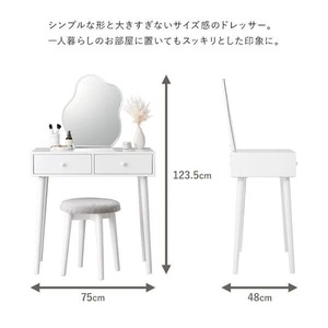 ■本体サイズ:ドレッサー:(約)幅75×奥行48×高さ123.5cm、スツール:(約)幅36×奥行36×高さ45cm■組立式