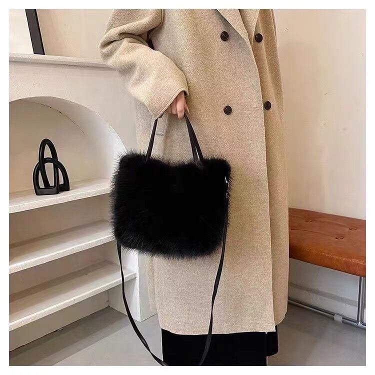 フェイクファー 2WAY バッグ ハンド&ショルダー ブラック 秋冬 ふわふわ