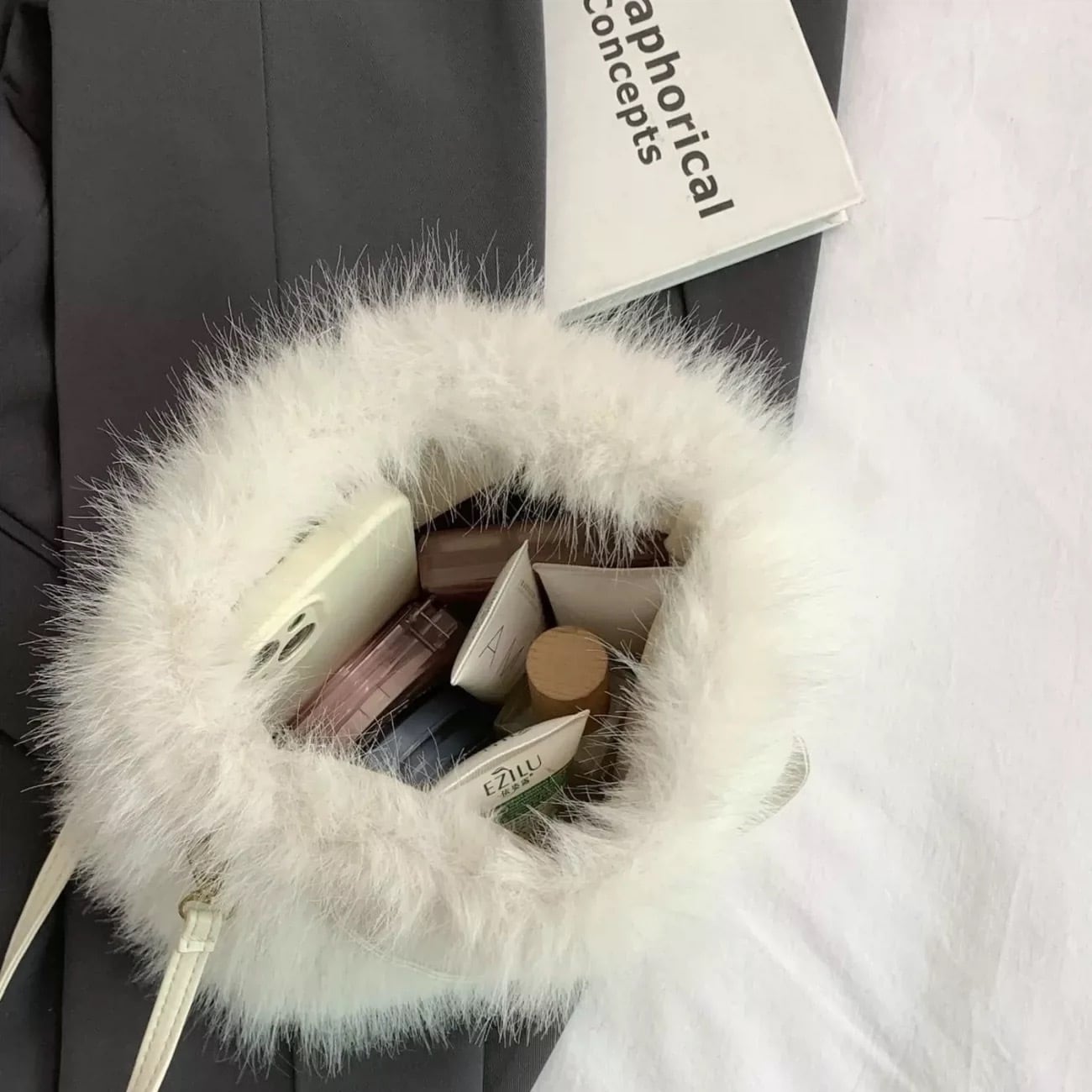 冬のコーディネートにぴったりな、ふわふわ素材が可愛いフェイクファーの2WAYバッグです。
