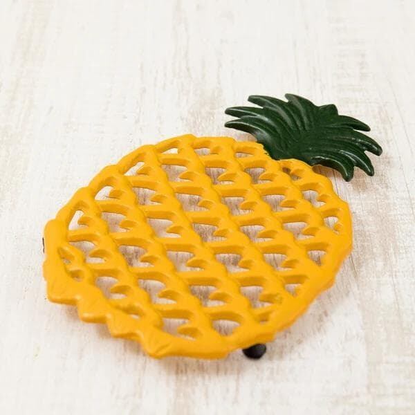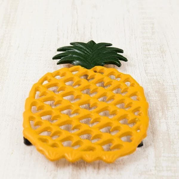 鮮やかなイエローがぱっと目を引く、パイナップルモチーフのトリベット(鍋敷き)です。