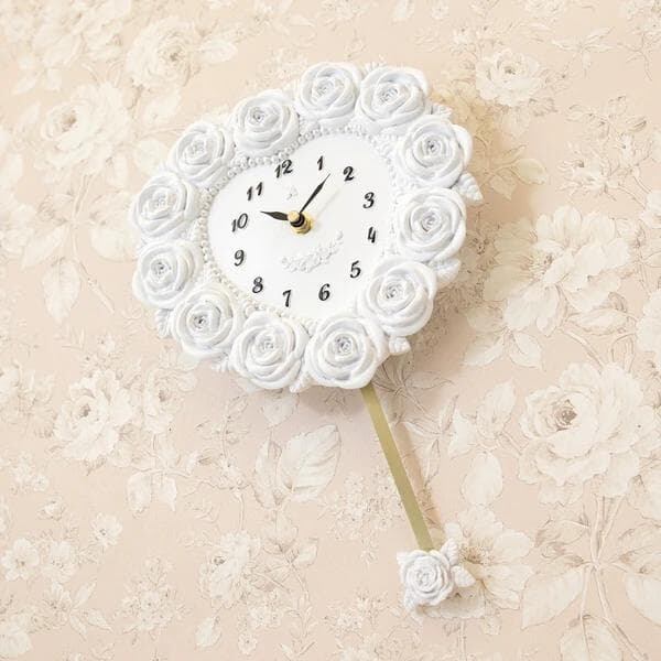 壁掛け 振り子 時計 姫系ハート 薔薇 バラ