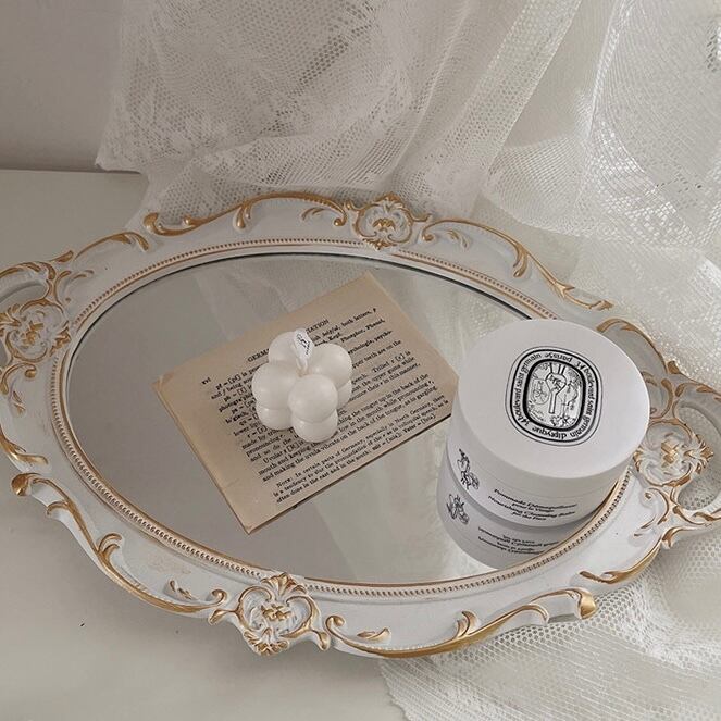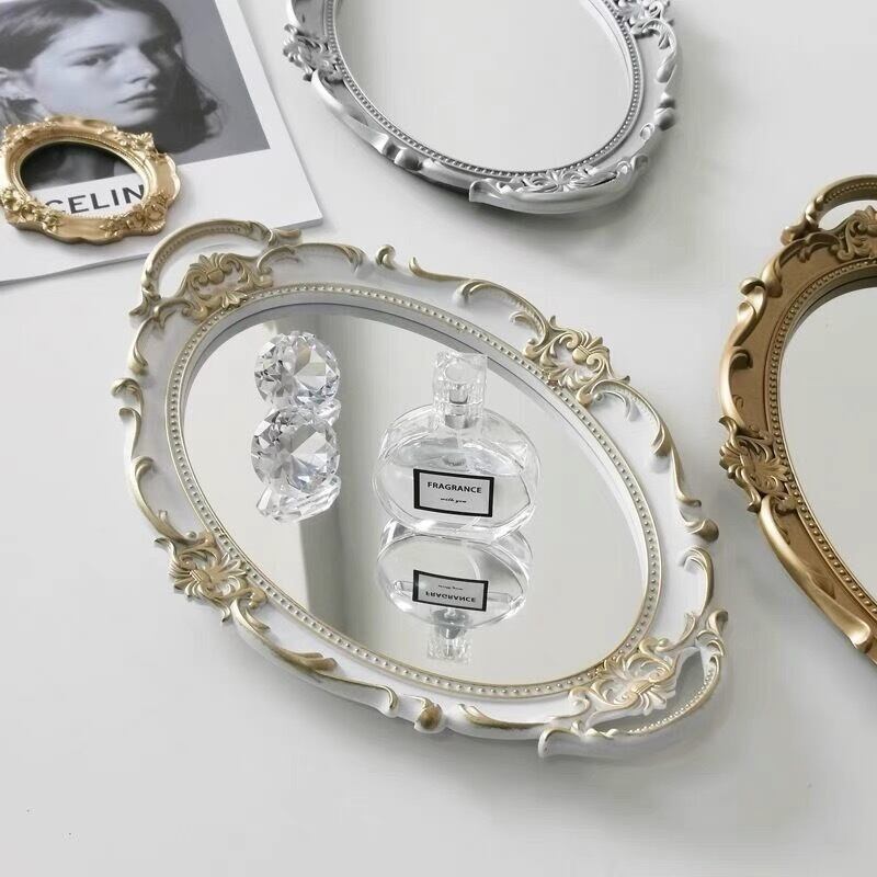 ホワイト ミラー アクセサリートレイ 韓国 北欧 インテリア 雑貨 レトロ アンティーク