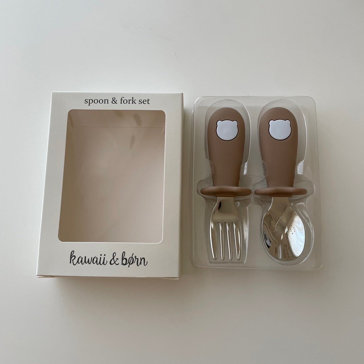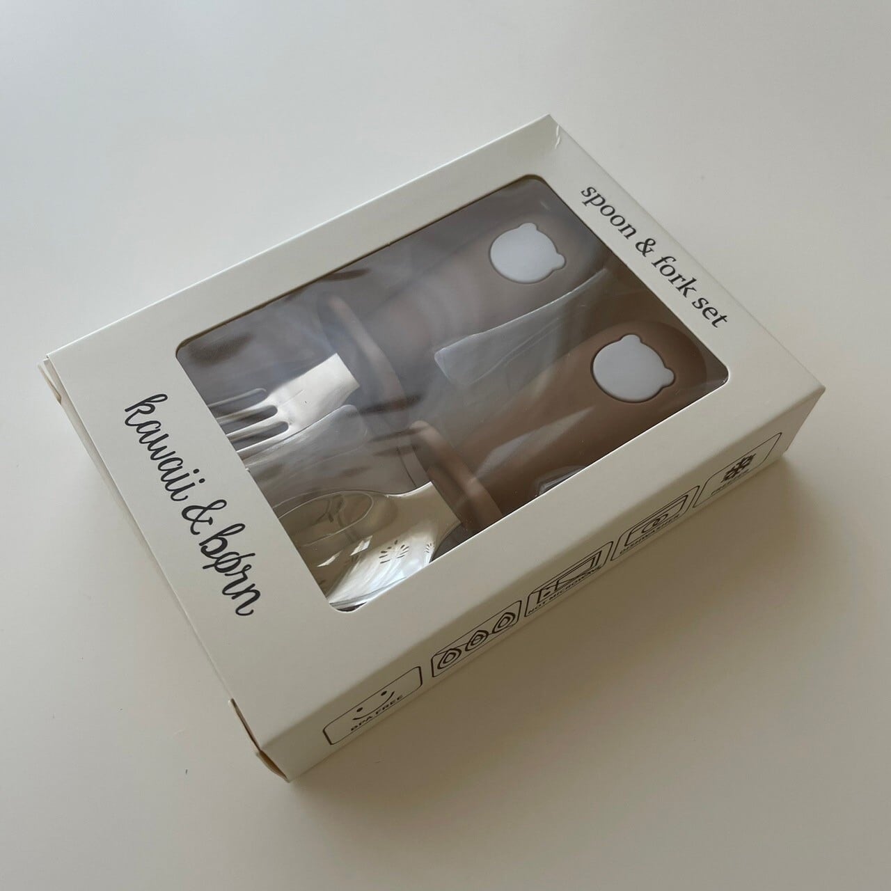 kawaii&bornのロゴ入り子供用カトラリーセット。