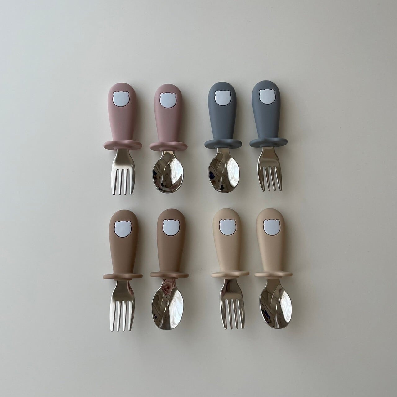 赤ちゃんからキッズまで握りやすいスプーンとフォークの2点セット。
