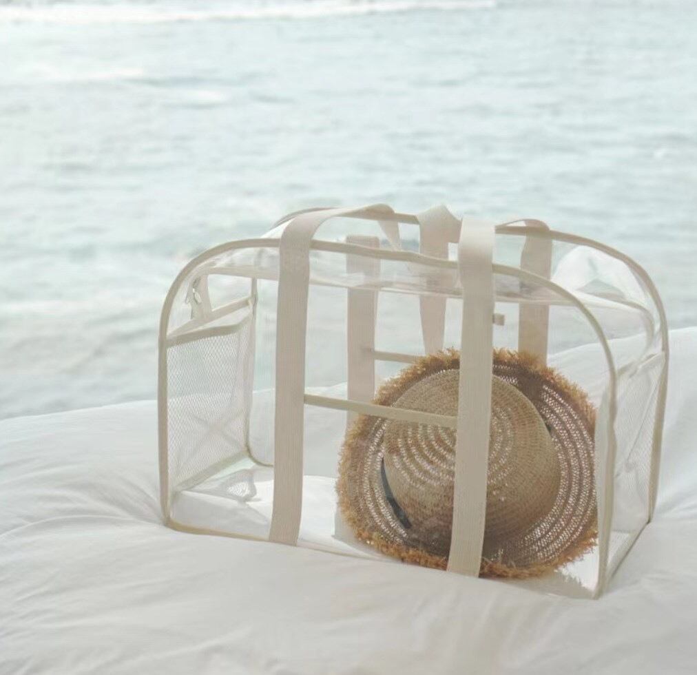 韓国風 大きめ ビーチバッグ プールバッグ スケルトン 透明 水陸両用 スパバッグ