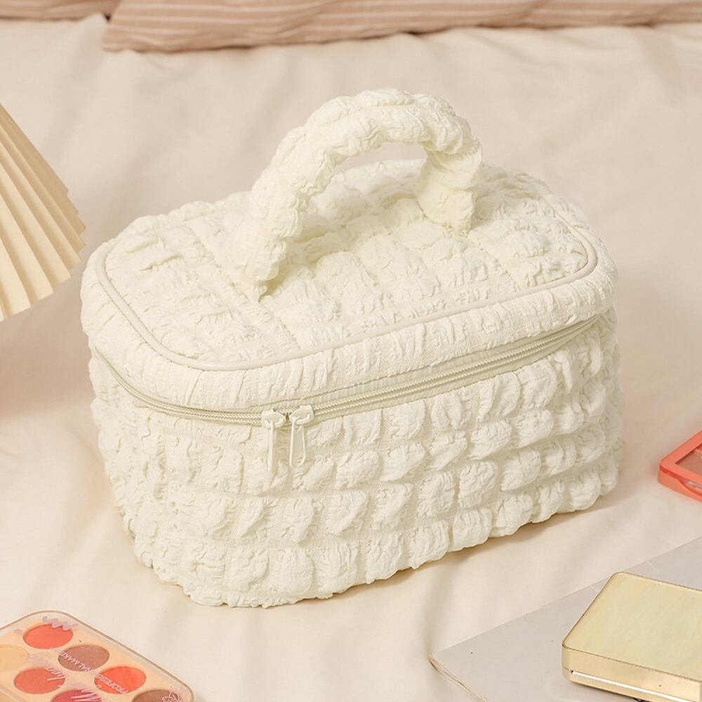 便利な手提げ付きで外出先や旅行先でもメイクアップアイテムを手軽に持ち運ぶことができる