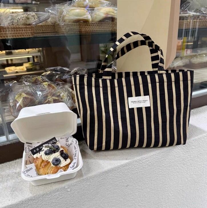 ストライプ ハンドバッグ ランチバッグ カジュアル