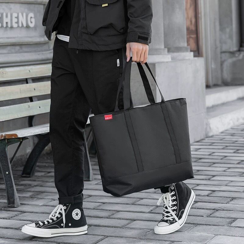 ファスナー付き 大容量 トートバッグ 通勤 通学 学生 男女兼用 A4収納 ブラック 黒