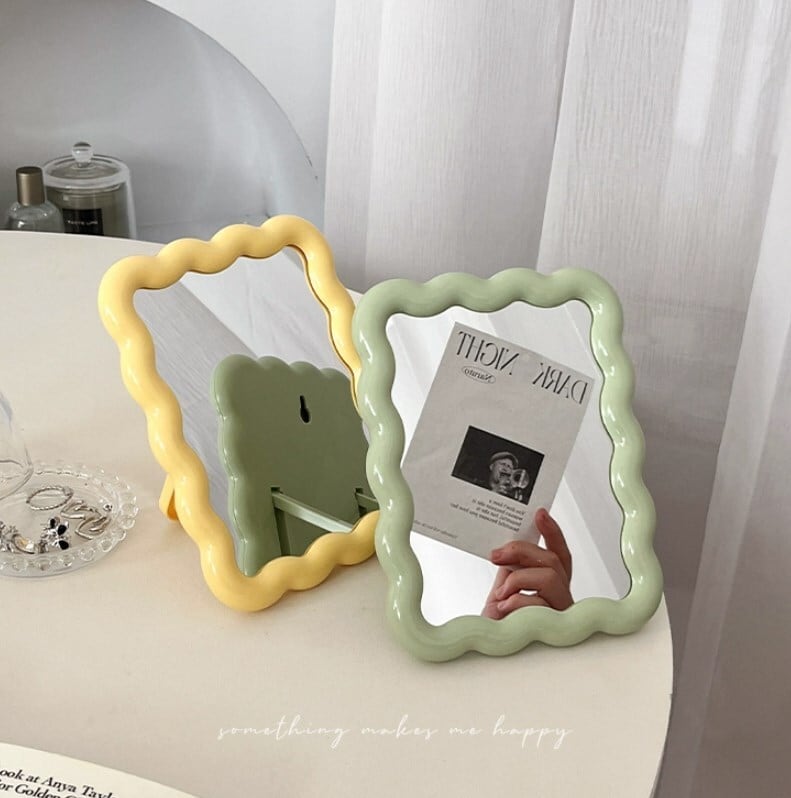 ウェーブ ミラー 卓上鏡 パステルカラー くすみカラー 韓国風 インテリア雑貨