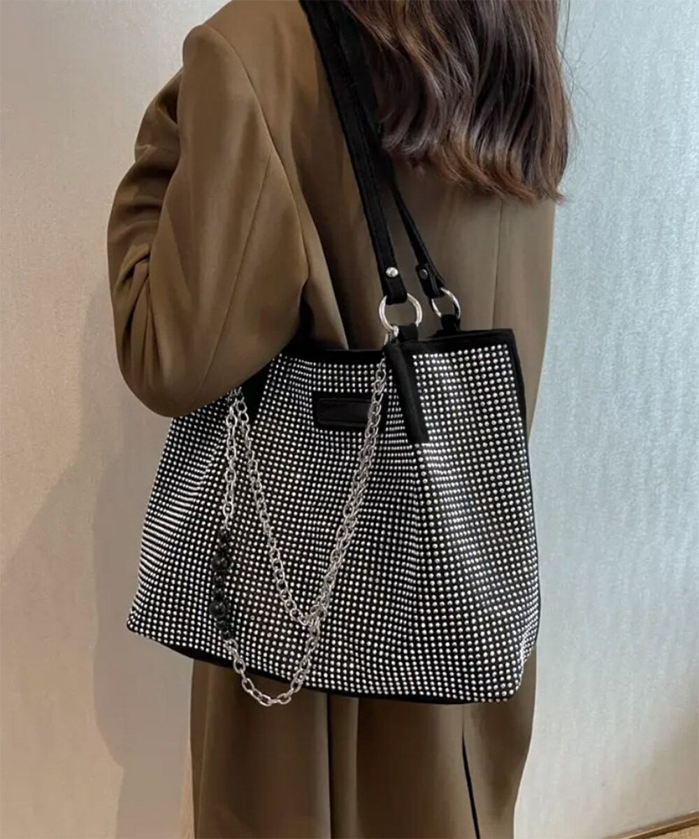 ポリエステル裏地と取り外し可能なチェーンが付いています。