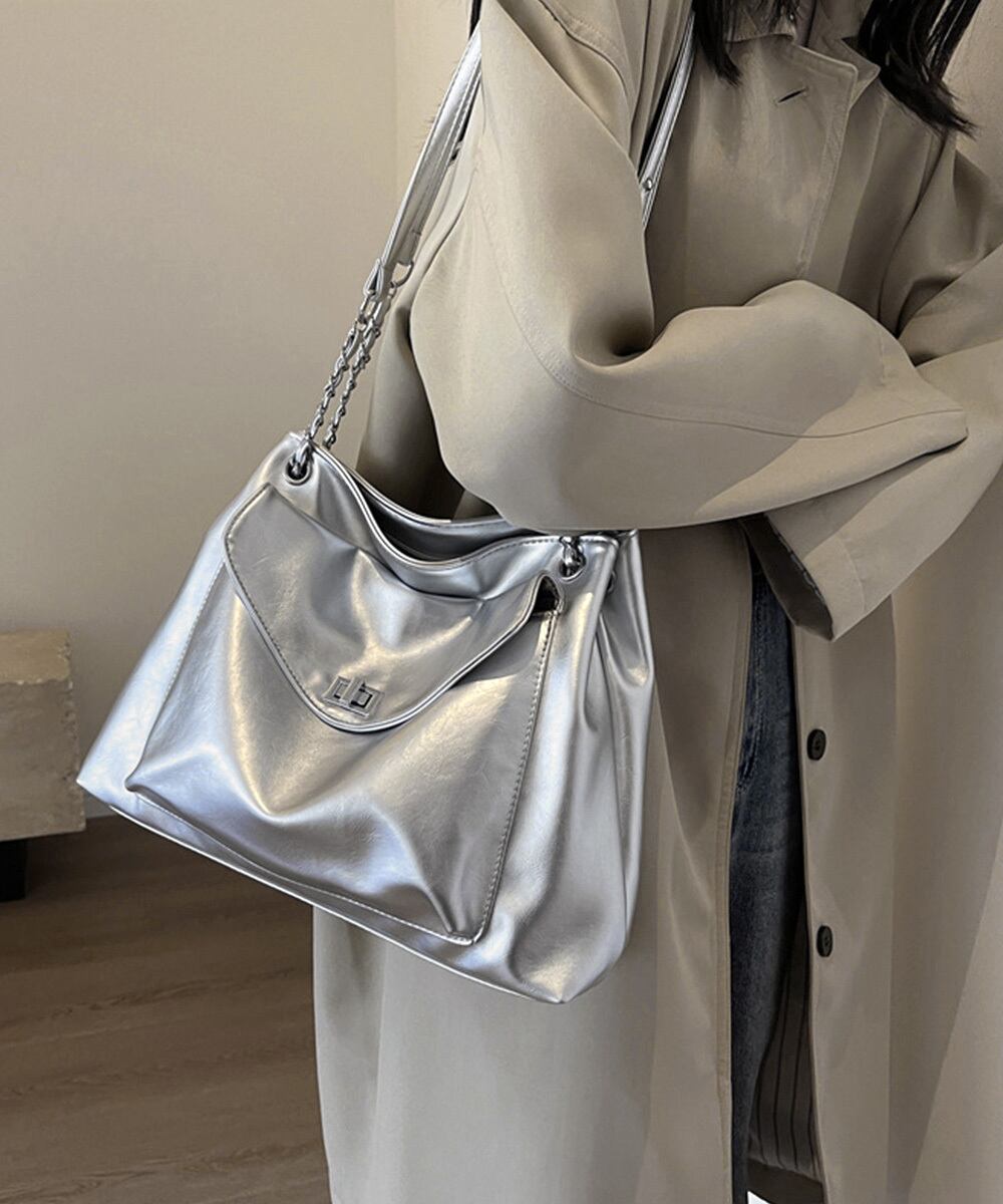 シンプルながらもモダンなデザインで、どんなスタイルにも合わせやすいトートバッグ